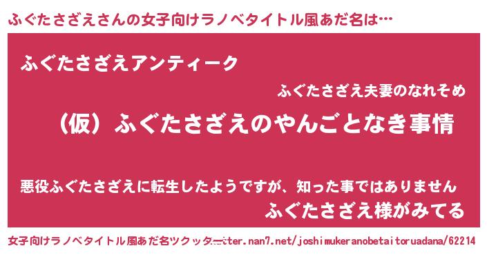 | 男性向けラノベタイトル風あだ名 | 『ふぐたさざえの憂鬱』 |