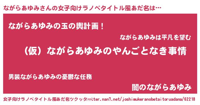 | 胡散臭い通販商品みたいなあだ名 | 『必ず成功する霊験あらたかなお札…その名も「ながらあゆみ」』 |