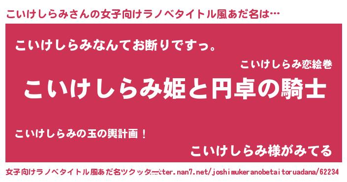 | 男性向けラノベタイトル風あだ名 | 『こいけしらみの憂鬱』 |
