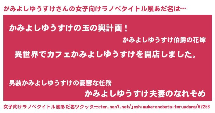 | 男性向けラノベタイトル風あだ名 | 『誰もが恐れるあのかみよしゆうすけが、ぼくの専属メイドになるようです。』 |
