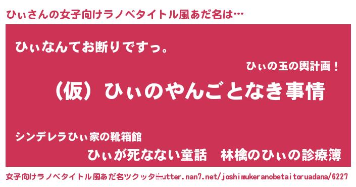 | 胡散臭い通販商品みたいなあだ名 | 『必ず成功する霊験あらたかなお札…その名も「ひぃ」』 |