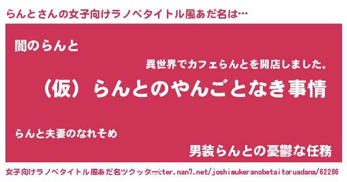 | 胡散臭い通販商品みたいなあだ名 | 『必ず成功するブレスレット…その名も「らんと」』 |