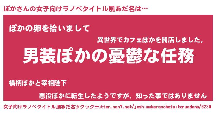 | 男性向けラノベタイトル風あだ名 | 『うちのぽかが世界を掌握している!』 |
