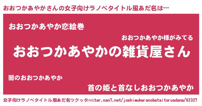 | 男性向けラノベタイトル風あだ名 | 『やはりおおつかあやかの青春ラブコメはまちがっている 』 |