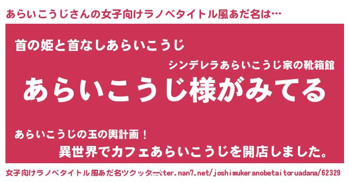 | 胡散臭い通販商品みたいなあだ名 | 『全米が絶賛したサプリメント…その名も「あらいこうじ」』 |