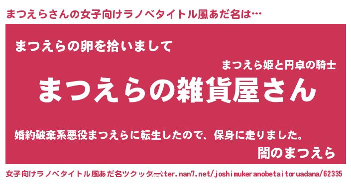 | 胡散臭い通販商品みたいなあだ名 | 『幸せが訪れる高級そうな絵画…その名も「まつえら」』 |
