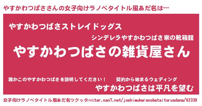 | 男性向けラノベタイトル風あだ名 | 『やはりやすかわつばさの青春ラブコメはまちがっている 』 |