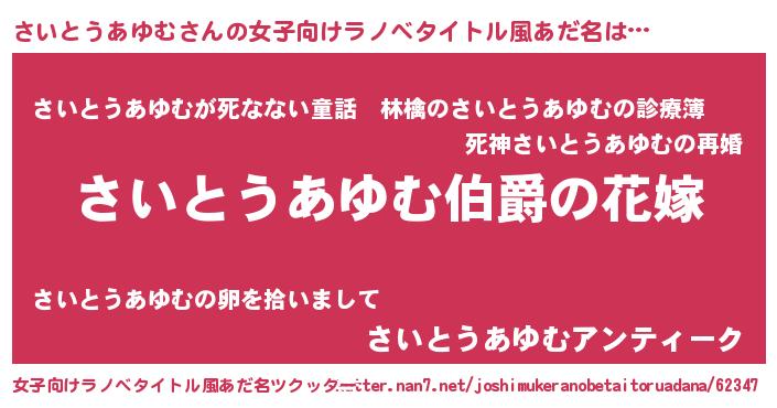 | 男性向けラノベタイトル風あだ名 | 『やはりさいとうあゆむの青春ラブコメはまちがっている 』 |