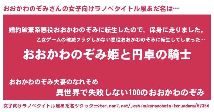 | 胡散臭い通販商品みたいなあだ名 | 『モテモテ間違いなし水晶球…その名も「おおかわのぞみ」』 |