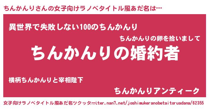 | 男性向けラノベタイトル風あだ名 | 『うちの娘の為ならば、俺はもしかしたらちんかんりも倒せるかもしれない。』 |