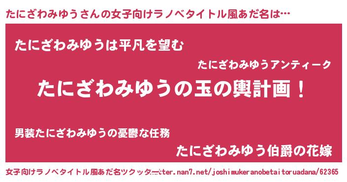 | 男性向けラノベタイトル風あだ名 | 『たにざわみゆう~年齢イコール彼女いない歴の魔法使い~』 |