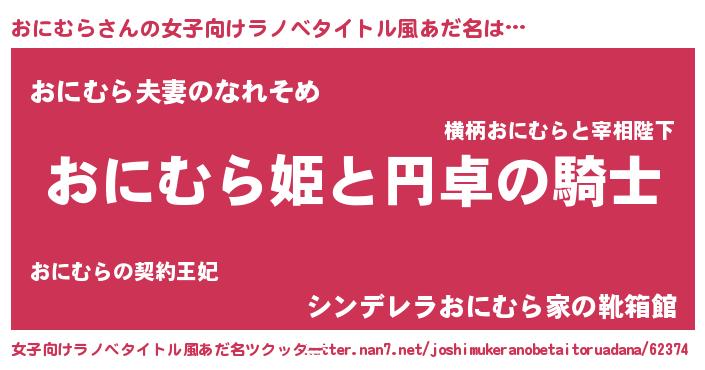 | 男性向けラノベタイトル風あだ名 | 『オニムラアートオンライン』 |