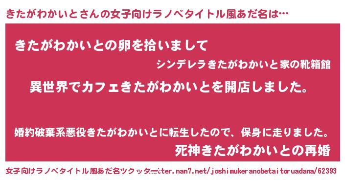 | 男性向けラノベタイトル風あだ名 | 『誰もが恐れるあのきたがわかいとが、ぼくの専属メイドになるようです。』 |