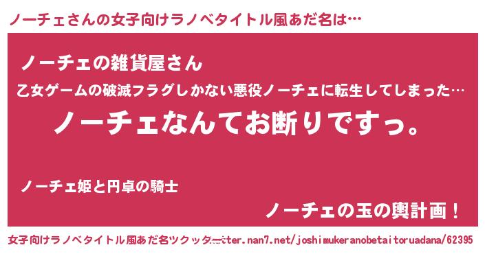 | 男性向けラノベタイトル風あだ名 | 『魔法科高校のノーチェ』 |