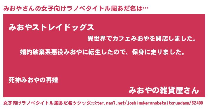 | ファンタジー風あだ名 | 『ユリミオヴァット』『ゼミオトゥ』 |