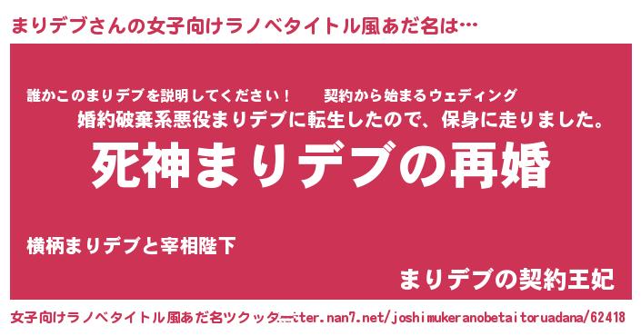 | 男性向けラノベタイトル風あだ名 | 『ノーゲーム・ノーマリデブ』 |