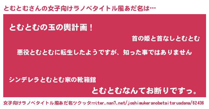 | 男性向けラノベタイトル風あだ名 | 『この素晴らしい世界にとむとむを!』 |