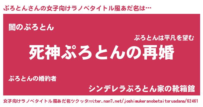 | 男性向けラノベタイトル風あだ名 | 『ノーゲーム・ノープロトン』 |