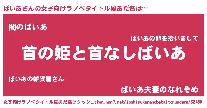 | 男性向けラノベタイトル風あだ名 | 『はたらくばいあさま!』 |