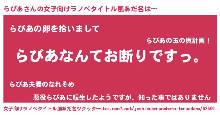 | 意味不明あだ名 | 『自称らびあ』『とにかく怪しいらびあ』 |