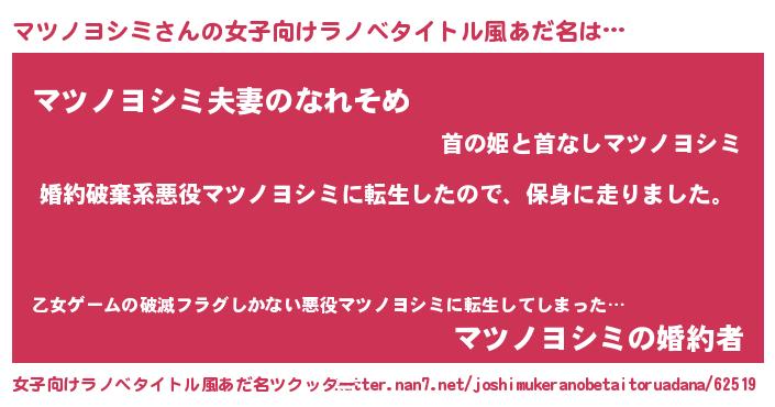 | 男性向けラノベタイトル風あだ名 | 『マツノヨシミスレイヤー』 |