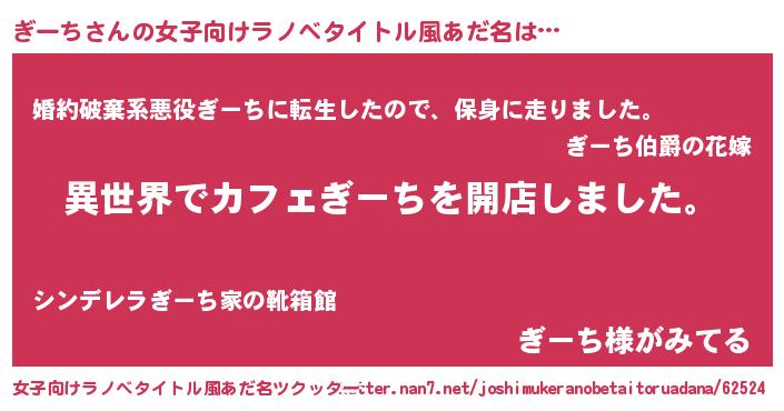 | 男性向けラノベタイトル風あだ名 | 『誰もが恐れるあのぎーちが、ぼくの専属メイドになるようです。』 |
