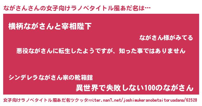 | ポケモン風あだ名 | 『ナーガイ』『ナガゴンZ』『ゼニナガ』 |
