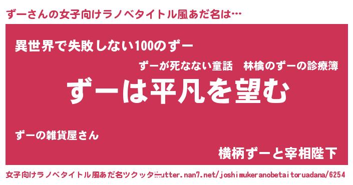 | 男性向けラノベタイトル風あだ名 | 『ダンジョンにずーを求めるのは間違っているだろうか』 |