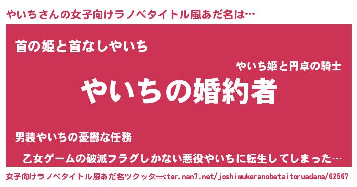 | 意味不明あだ名 | 『やいちフォーエバー』『ペロリンやいち』 |