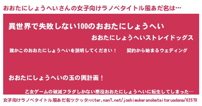 | ヘコむあだ名 | 『おおにー』『おおたにしょうへい(笑)』 |