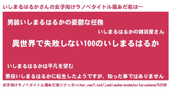 | 胡散臭い通販商品みたいなあだ名 | 『絶対に幸福をもたらす健康食品…その名も「いしまるはるか」』 |