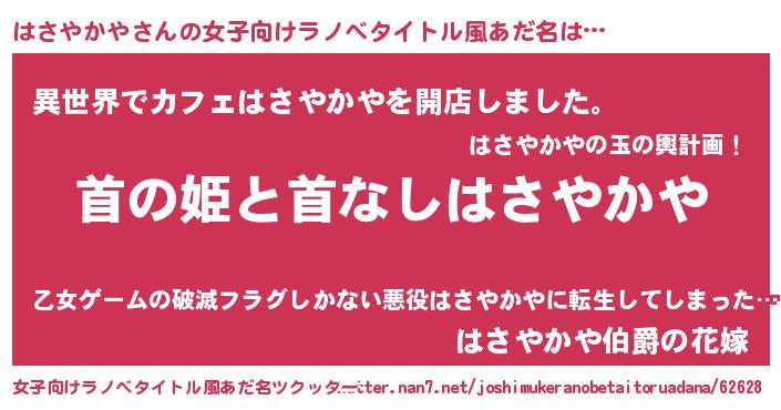 | 男性向けラノベタイトル風あだ名 | 『はたらくはさやかやさま!』 |