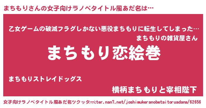 | 男性向けラノベタイトル風あだ名 | 『ノーゲーム・ノーマチモリ』 |