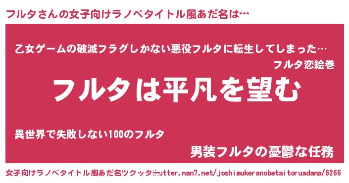 | 胡散臭い通販商品みたいなあだ名 | 『信頼と実績のサプリメント…その名も「フルタ」』 |