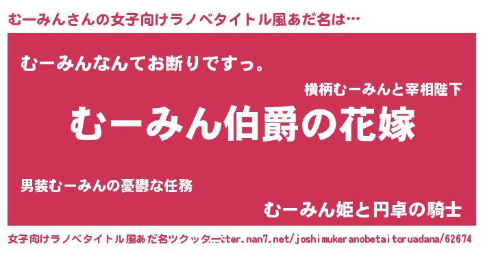 | 意味不明あだ名 | 『むーみんフォーエバー』『自称むーみん』 |