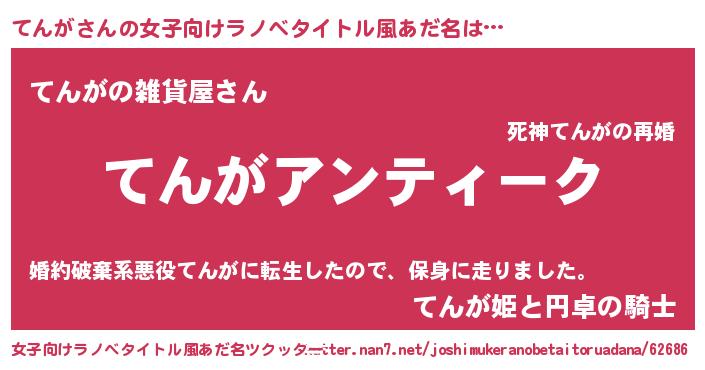 | 男性向けラノベタイトル風あだ名 | 『魔法科高校のてんが』 |
