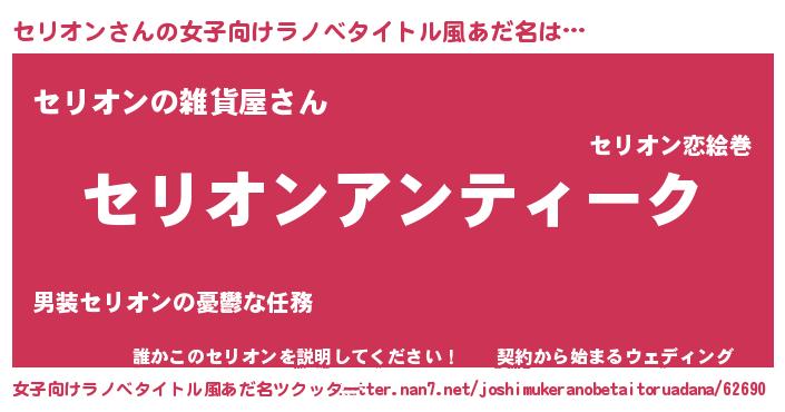 | 男性向けラノベタイトル風あだ名 | 『魔法科高校のセリオン』 |
