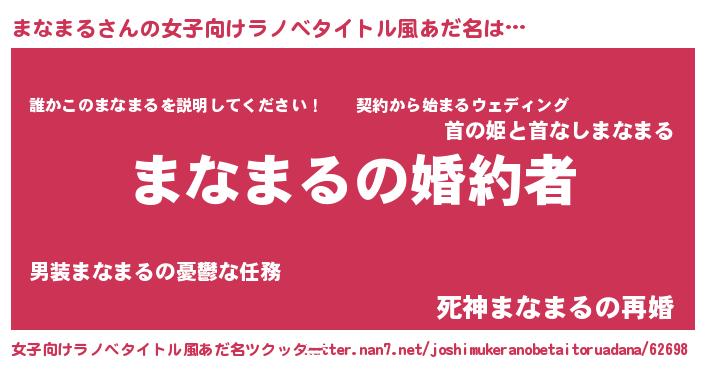 | 胡散臭い通販商品みたいなあだ名 | 『運命の人と巡り会える高級そうな壺…その名も「まなまる」』 |