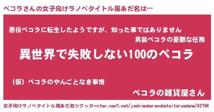 | 男性向けラノベタイトル風あだ名 | 『ペコラという概念が存在しない退屈な世界 』 |