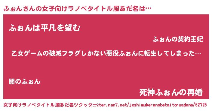 | 男性向けラノベタイトル風あだ名 | 『魔弾の王とふぉん』 |