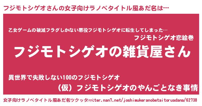 | 欧米人風あだ名 | 『フジモトシゲオクリステル』 |