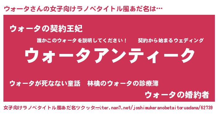 | 男性向けラノベタイトル風あだ名 | 『魔法科高校のウォータ』 |