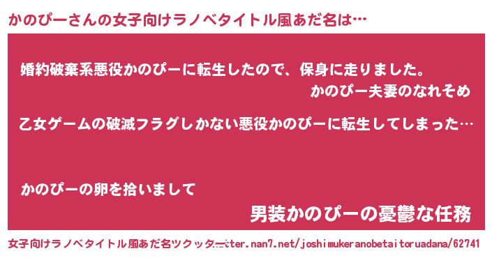 | 胡散臭い通販商品みたいなあだ名 | 『世界中を虜にした100年もののヴィンテージワイン…その名も「かのぴー」』 |
