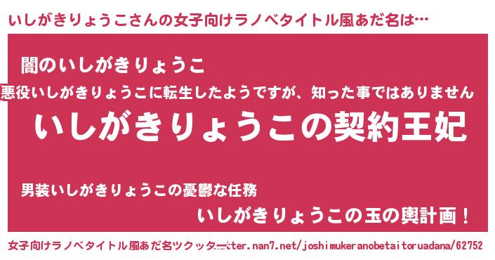 | 男性向けラノベタイトル風あだ名 | 『誰もが恐れるあのいしがきりょうこが、ぼくの専属メイドになるようです。』 |