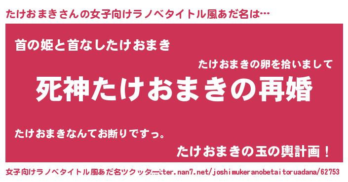 | 男性向けラノベタイトル風あだ名 | 『ノーゲーム・ノータケオマキ』 |