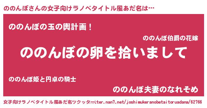 | 男性向けラノベタイトル風あだ名 | 『ののんぼの嫁は女の子じゃないと思った?』 |