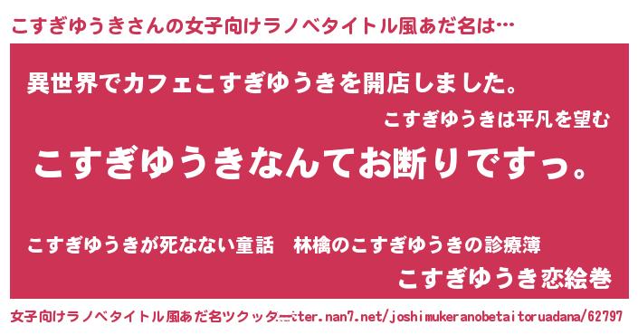 | 男性向けラノベタイトル風あだ名 | 『魔法科高校のこすぎゆうき』 |