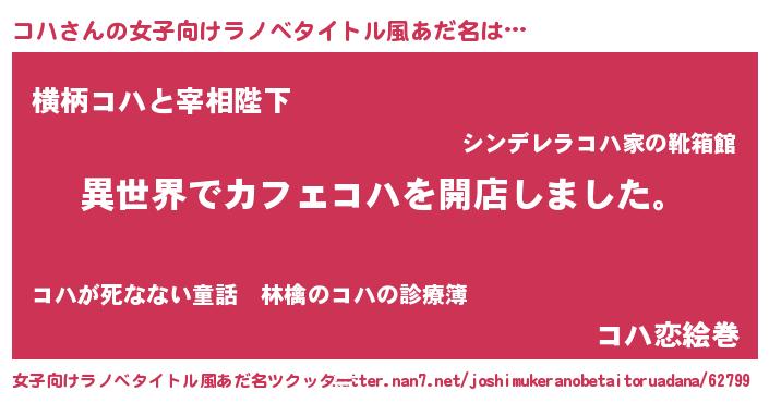 | 男性向けラノベタイトル風あだ名 | 『誰もが恐れるあのコハが、ぼくの専属メイドになるようです。』 |