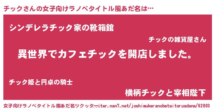 | 男性向けラノベタイトル風あだ名 | 『誰もが恐れるあのチックが、ぼくの専属メイドになるようです。』 |