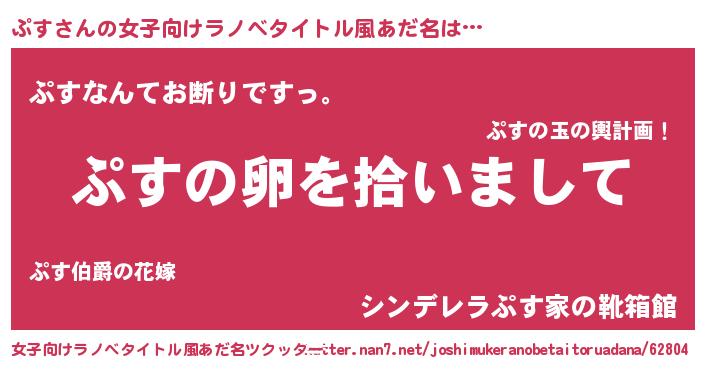 | 男性向けラノベタイトル風あだ名 | 『ぷすの嫁は女の子じゃないと思った?』 |